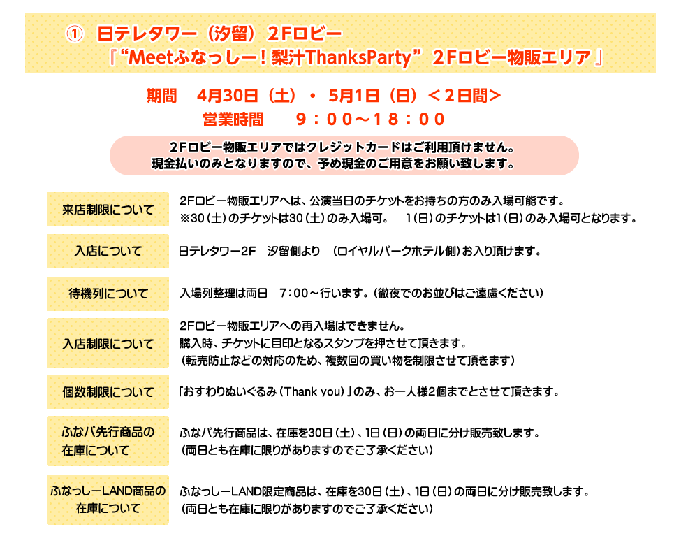 『Meetふなっしー梨汁ThanksParty♡』の商品販売について
